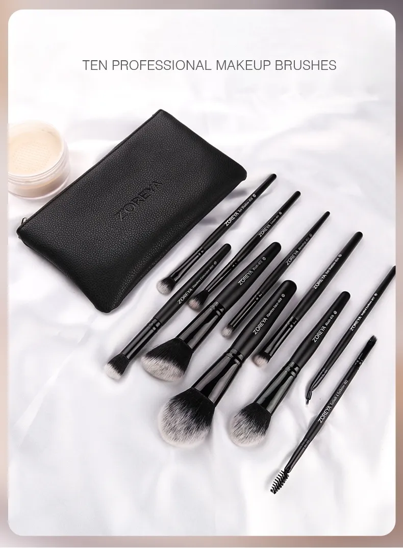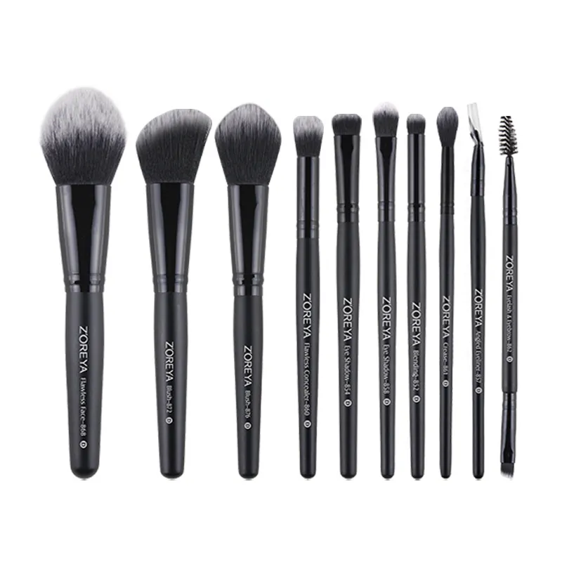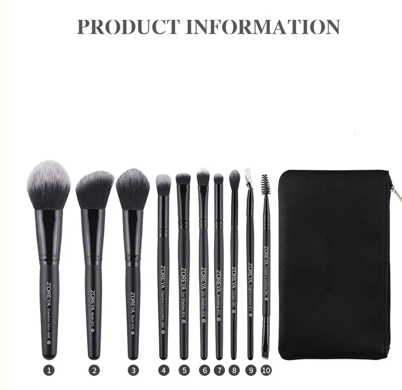• Complete 10-Brush Set: Includes essential brushes for foundation, powder, blush, contour, highlight, eyeshadow, and blending.