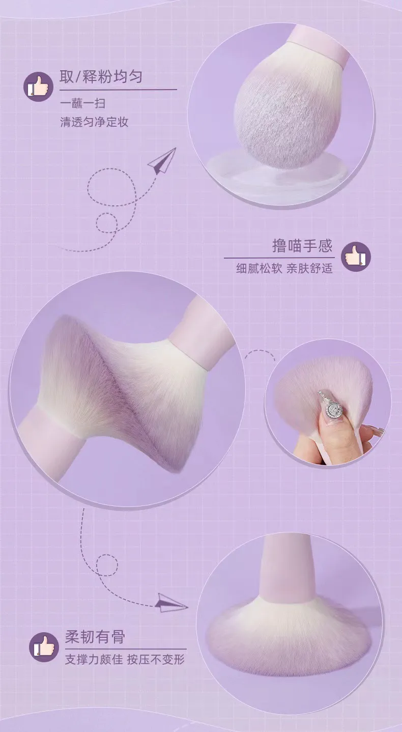 Matching Purple Bag: A chic and practical cosmetic bag keeps your brushes organized and travel-ready.